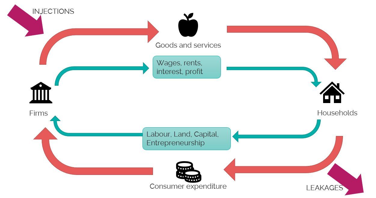 the provision of goods and services, the funds to pay for them, the provision of labour and the supply of wages all result from the interaction between households and firms