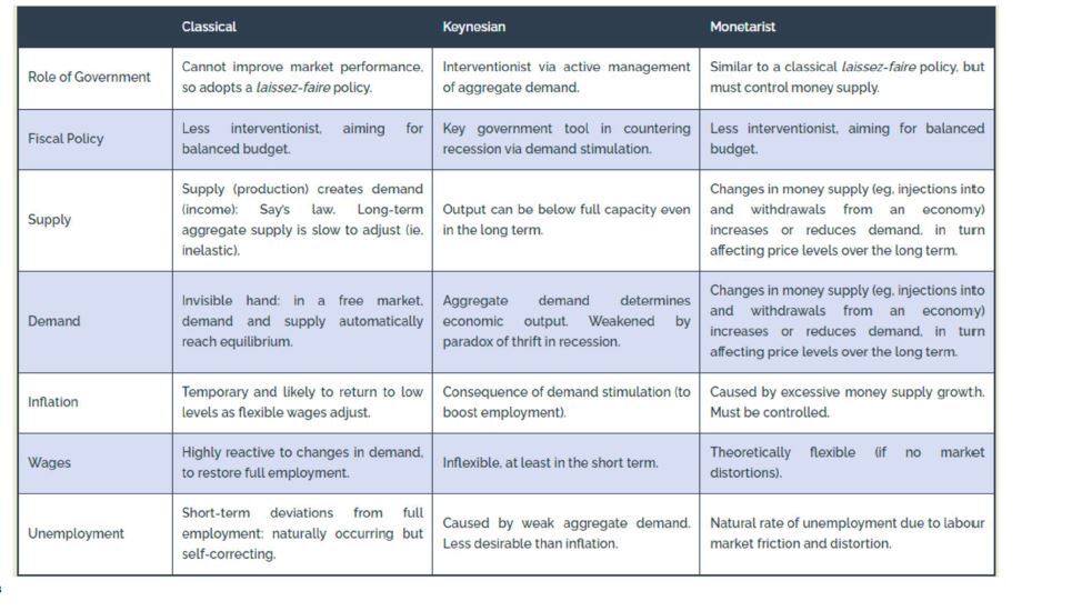 Key diff between Keynes + Monetarist is whether supply or demand drives initial momentum