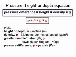 pressure difference, depth, density and g