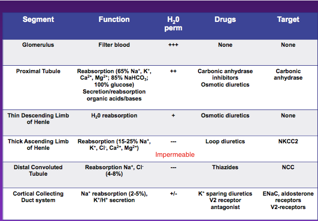 Kidney Physiology: Segment, Function, H2O, Drugs, Target