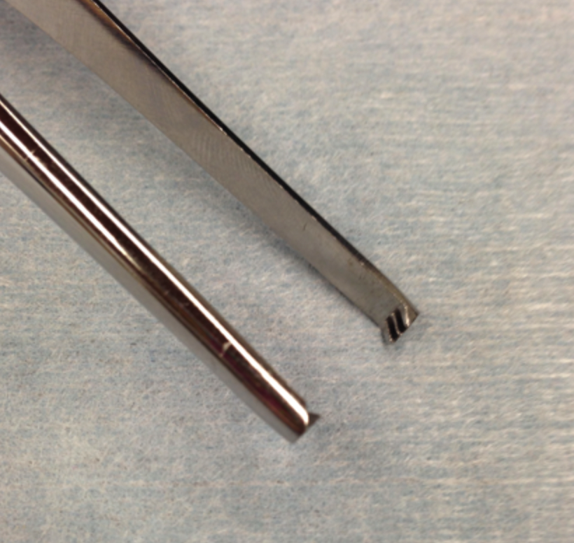 close up of the transverse serrations on straight Kelly Hemostatic Forceps.