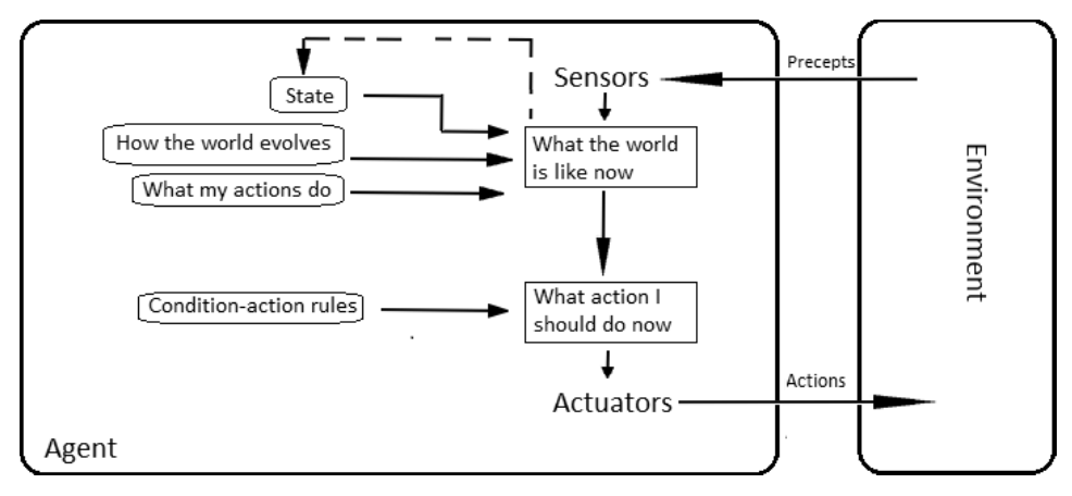 A model-based reflex agent should maintain some sort of internal model that depends on the percept history and thereby reflects at least some of the unobserved aspects of the current state. It then chooses an action in the same way as the reflex agent. The reasoning may involve searching and planning.