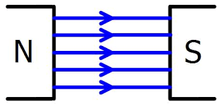 Magnetic field lines are parallel AND evenly spaced