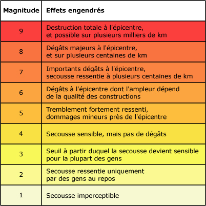 Quantité d’énergie libérée lors d’un séisme. Se mesure sur l’échelle de Richeter (9 ou 12 niveaux).