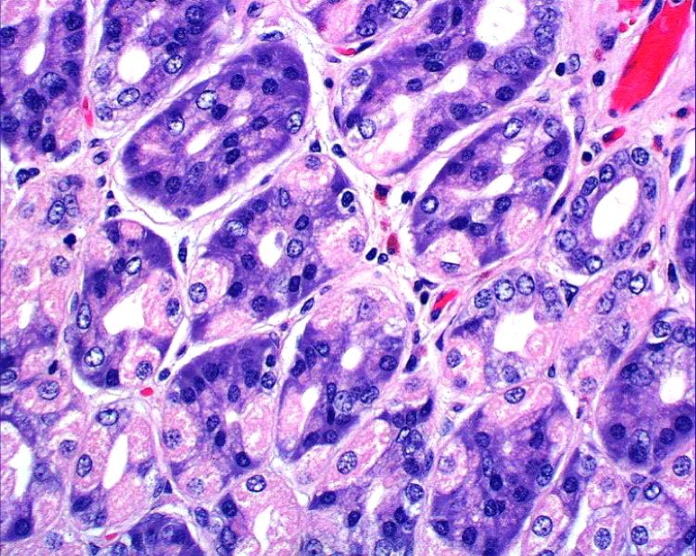 <p>oxyntic; combination of both basophilic and eosinophilic cells</p>