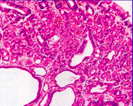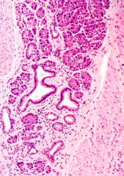 <p>These are normal pancreatic cells growing in the wall of the stomach.</p>
