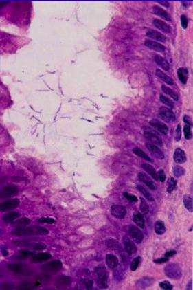 <li>infects foveolar epithelium</li>