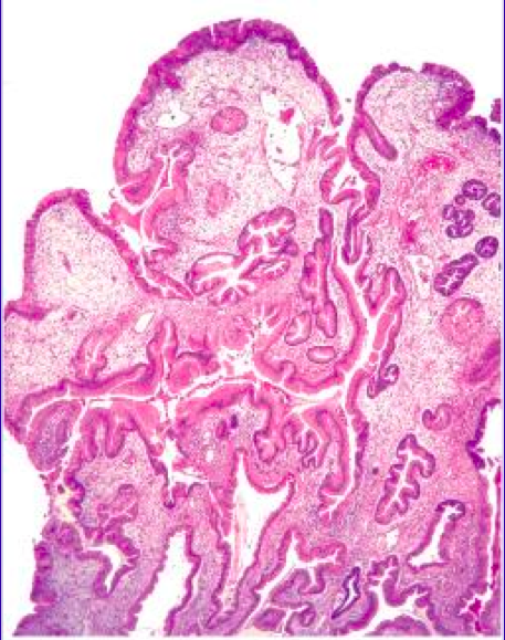 <li><u>Intestinal</u>: like colonic pattern (i.e. accumulation of mutations → dysplasia → carcinoma)</li>