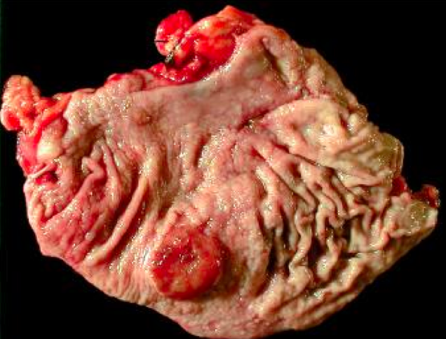 <p>95% of gastric tumors are carcinomas. There are two kinds: intestinal-type and diffuse-type.</p>
