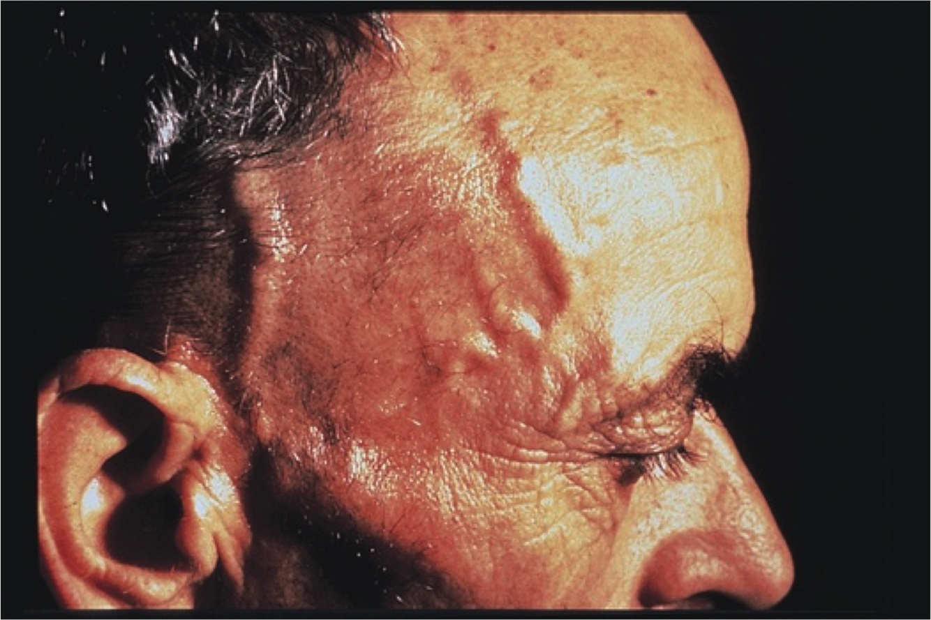 A 70 yo man is seen because of new headaches located where his hat rubs on his temples. He finds his scalp painful when he combs his hair, his vision has momentarily gone black and his jaws hurt to chew steak. He has lost 10 pounds and he has a low grade fever of 100 on a daily basis.