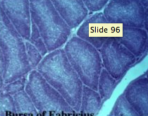 What are the dark areas surroudning these cells of the Bursa of Fabricius? Why does it get less dense as it gets toward the center?