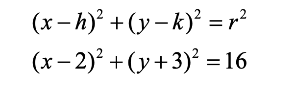 Find the standard form equation of a circle with center (2, –3) and radius 4.