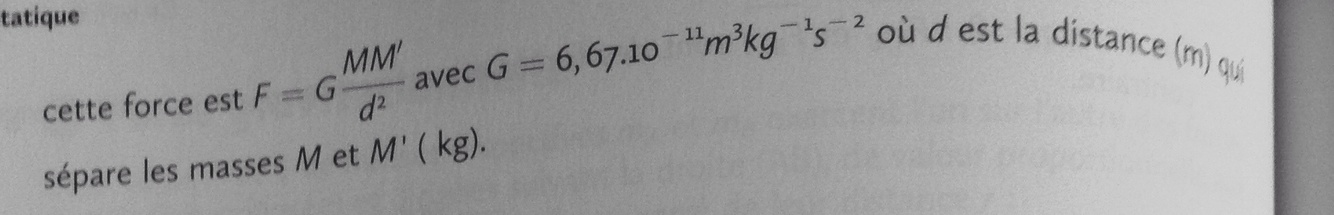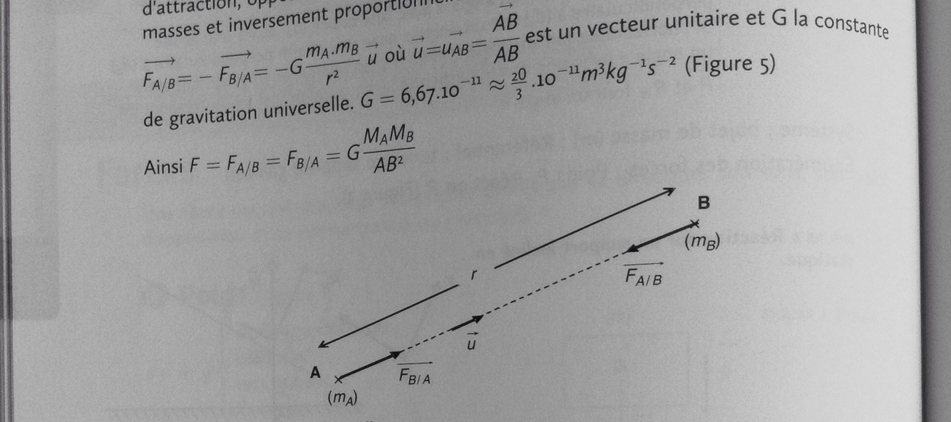 2 corps A et B exercent l’un sur l’autre des forces d’attraction opposées et dirigées suivant la droite (AB) de valeur proportionnelle aux masses et inversement proportionnelle au carré de leur distance r
