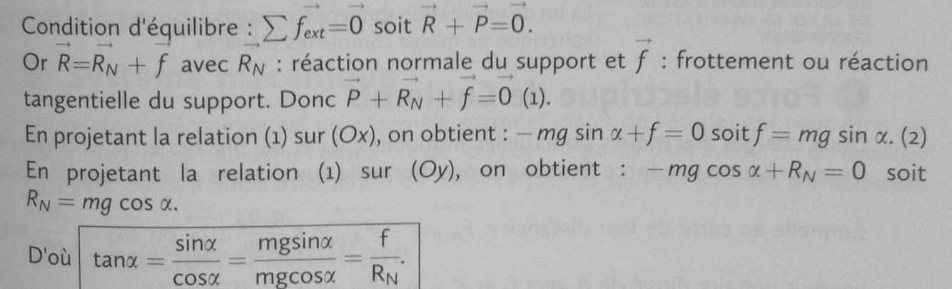 - mg.cosα + RN = 0 soit RN = mg.cosα