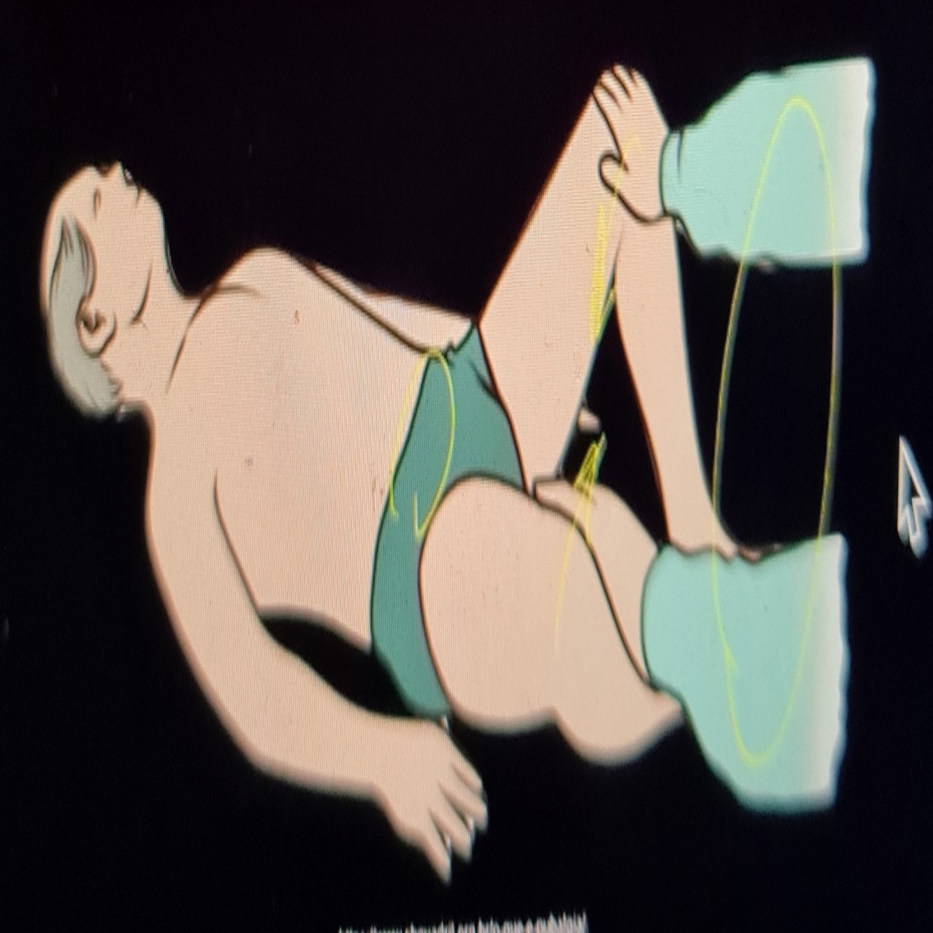 Faz passivamente com paciente em decúbito lateral abdução do quadril no membro avaliado com extensão da perna. Após isso fletimos o quadril, assim jogamos trocanter maior para posterior e ganhando mais abdução