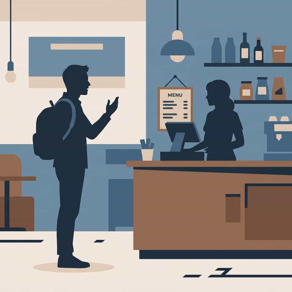 Woman: “A water, please.”