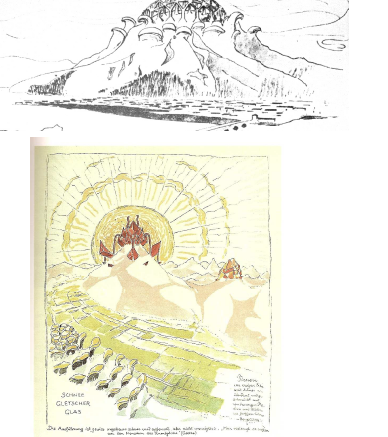 2) Chaîne de Verre : Cercle de correspondance sur l’architecture par Bruno Taut détenant une ouverture sur de nouvelles formes et un retour aux premiers organismes vivants primaires.