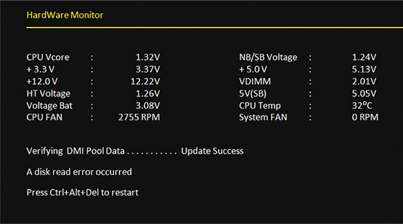 These error messages on a black background, such as the one shown here, are most likely caused by an error at POST. Begin by troubleshooting the device mentioned in the error message.