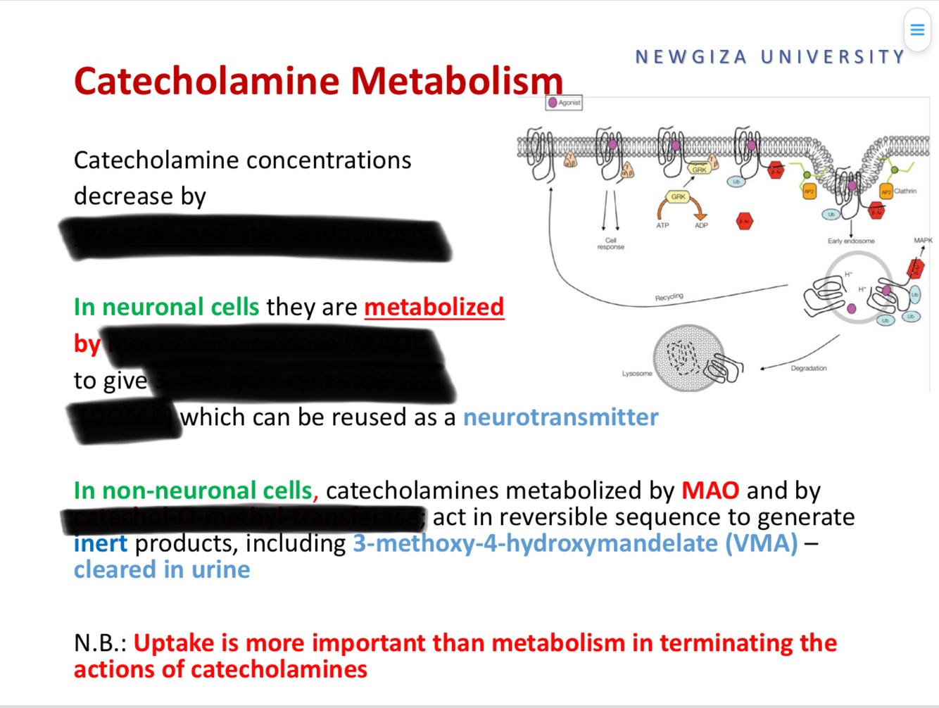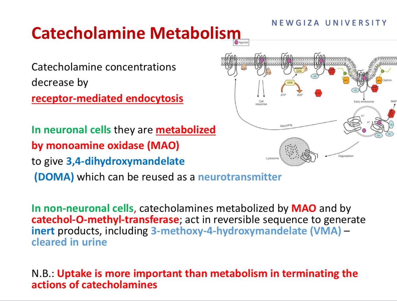 N.B.: Uptake is more important than metabolism in terminating the actions of catecholamines