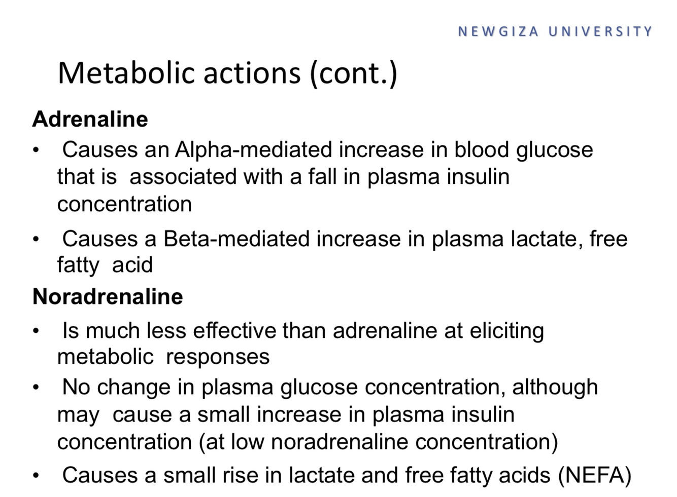 • Effects of noradrenaline on gut motility are less marked and no effect on bronchial tone