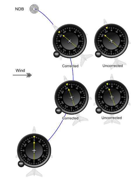 Direct tracking to an NDB (along a direct path in crosswind conditions) can be achieved by adjusting the aircraft heading for the correct wind correction angle.