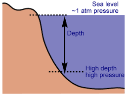 Pressure at depth is not affected by the volume of water- only the depth of water above it.