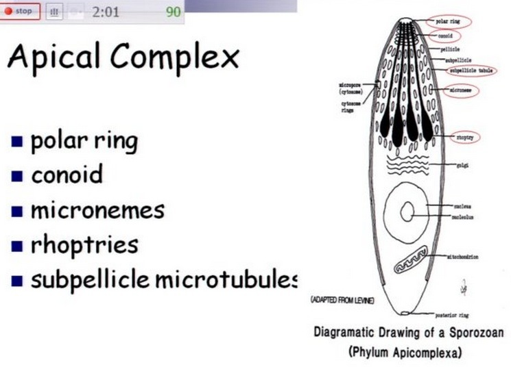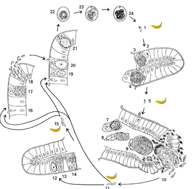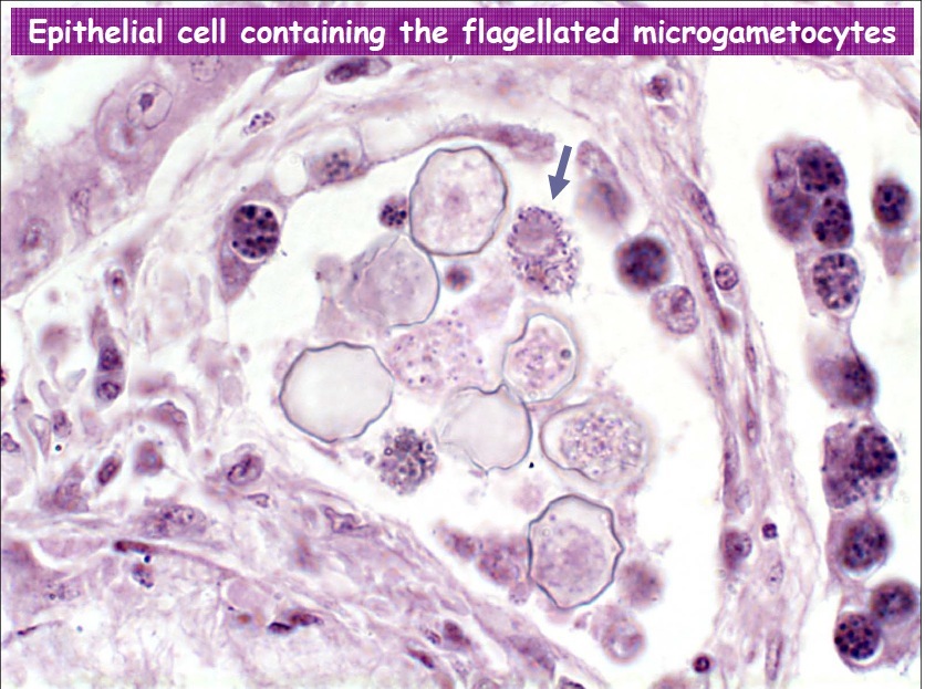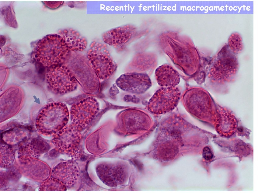 microgametes (escape from microgametocyte, fertilize the macrogametocyte)