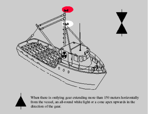 At night, which lights would you see on a vessel engaged in fishing, other than trawling?