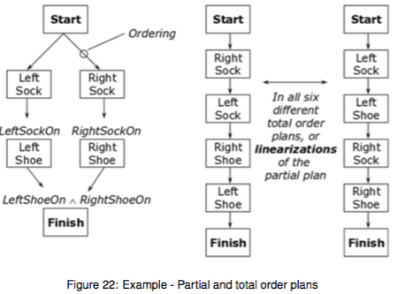 More complex cases: Partially ordered set of actions, such that every action sequence that respects the partial order is a solution