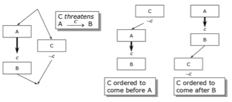 - Competing needs - a pre-condition of one action negates a pre-condition of the other (e.g. Eat(Cake) and Bake(Cake))