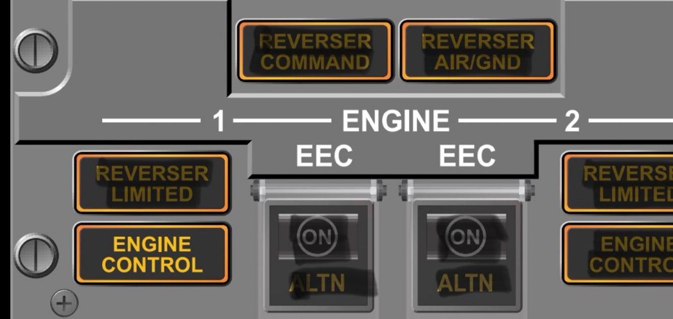 White ON lights are the only lights illuminated on the associated EEC switch on the engine panel