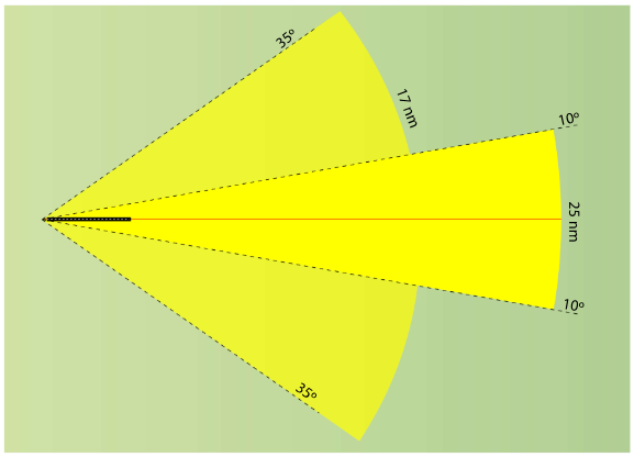 The GP is determined by two overlapping upper and lower beams (lobes), AM modulated at 90 Hz (Upper, Yellow) and 150 Hz(Lower, Blue) respectively.