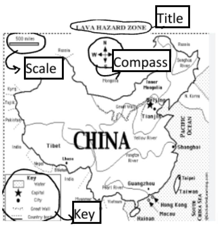 Label the four map features shown below.