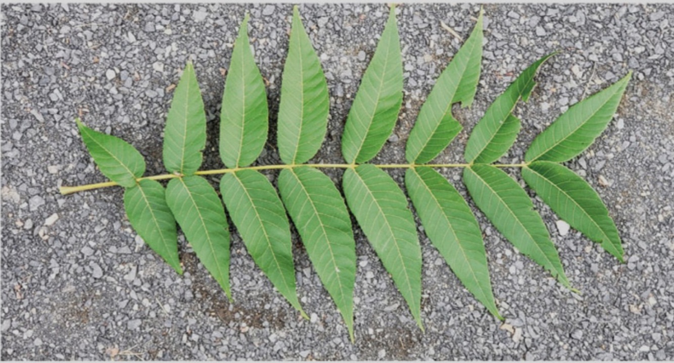 Ash. Boxelder. Hickory. Butternut. Black walnut. Ailanthus. Black locust. Sumac.