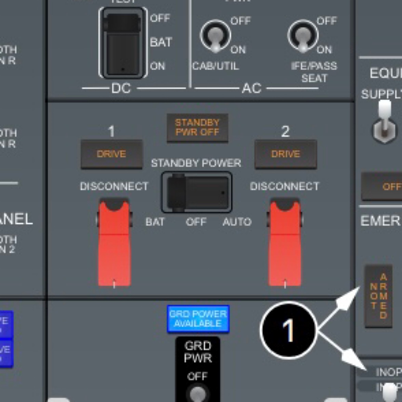 - removes power from Battery Bus, Switched Hot Battery Bus, DC Standby Bus, Static Inverter, and AC Standby Bus when battery is only power source