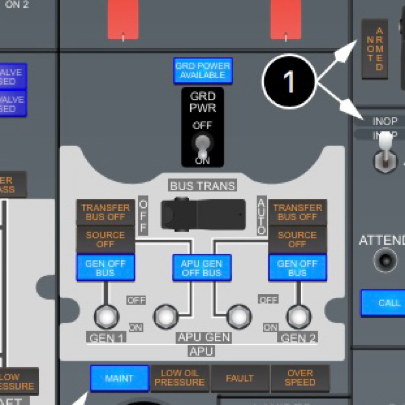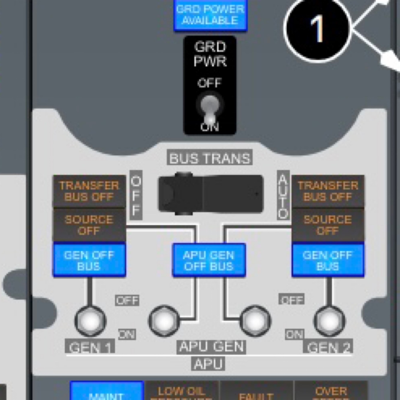 Once the IDG Generator Control Breaker closes (connecting IDG power to the Transfer Bus), the respective GEN OFF BUS light will