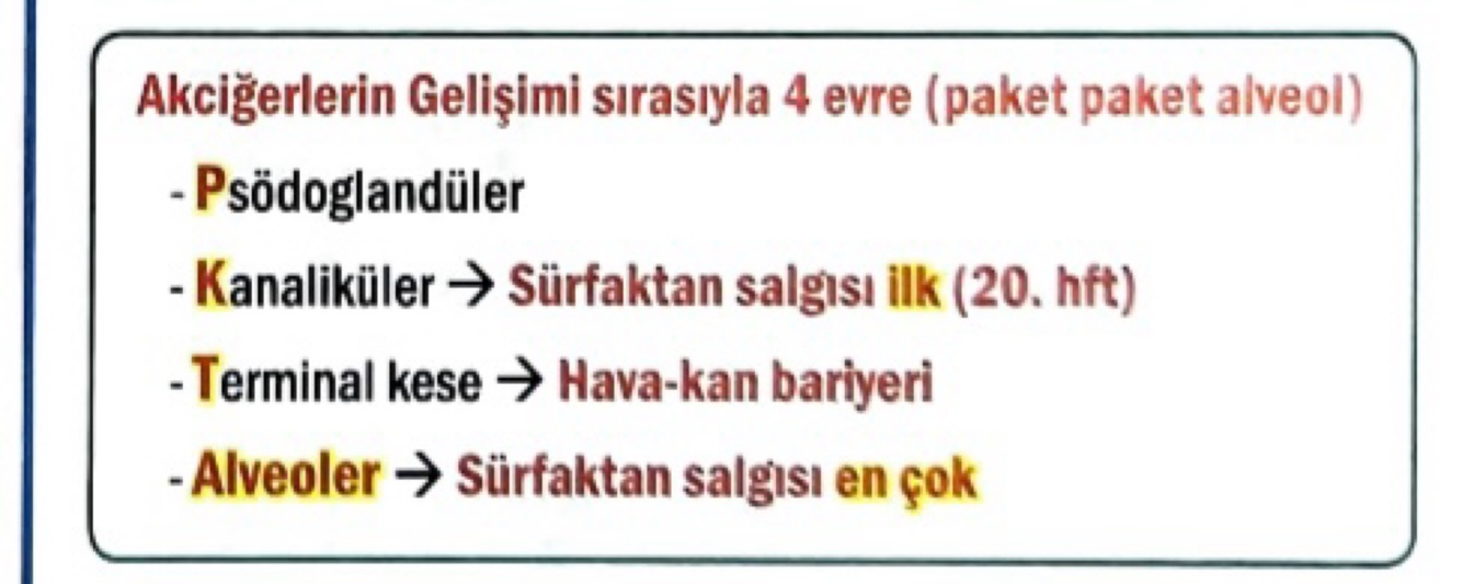 Akciğer gelişiminde ilk sürfaktan salgısı hangi evrede gerçekleşir?