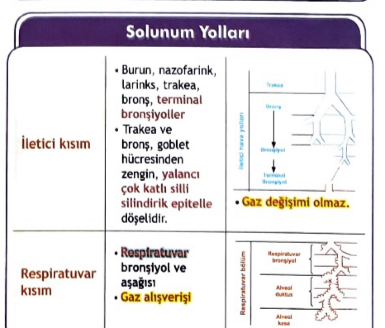 Bu yapı, solunum yollarının nemli kalmasını sağlar.