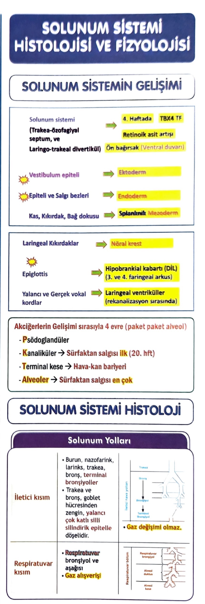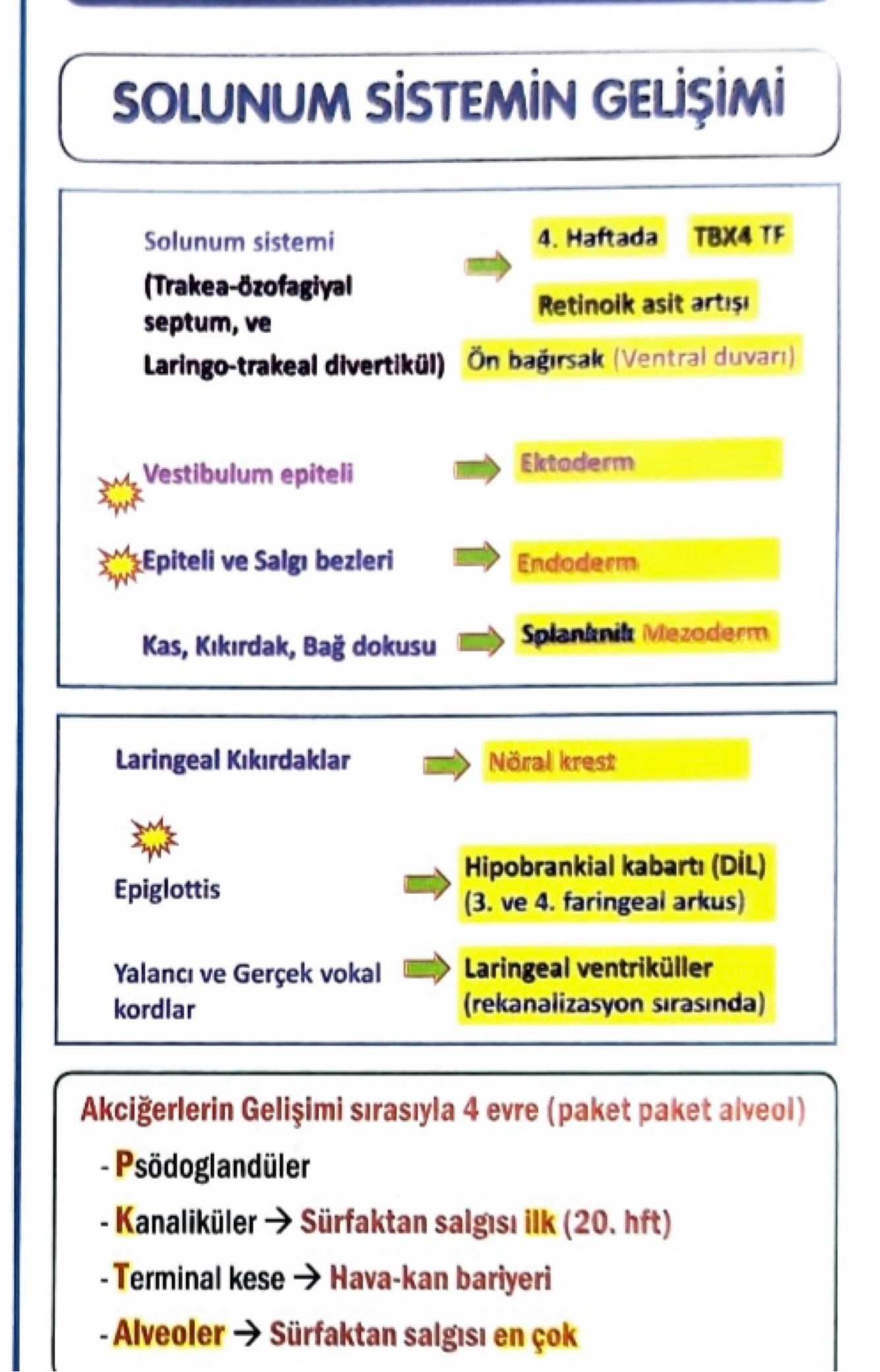 Bu yapıların gelişimi, solunum sisteminin temelini oluşturur.