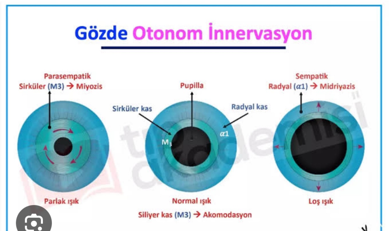 Sirküler kas, gözbebeğini daraltmak için parasempatik sistem tarafından kontrol edilir.