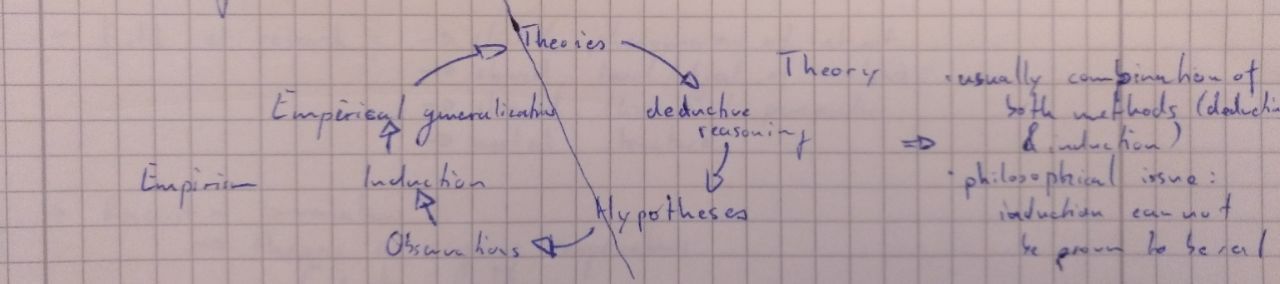 Theory: theories -> deductive reasoning -> hypotheses (-> observations)