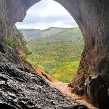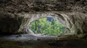 a large hole in the side of a cliff (= straight, high rock next to the sea), mountain, or under the ground