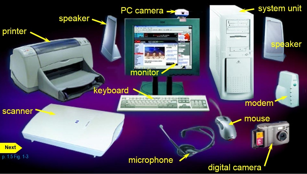 What are common computer hardware components?