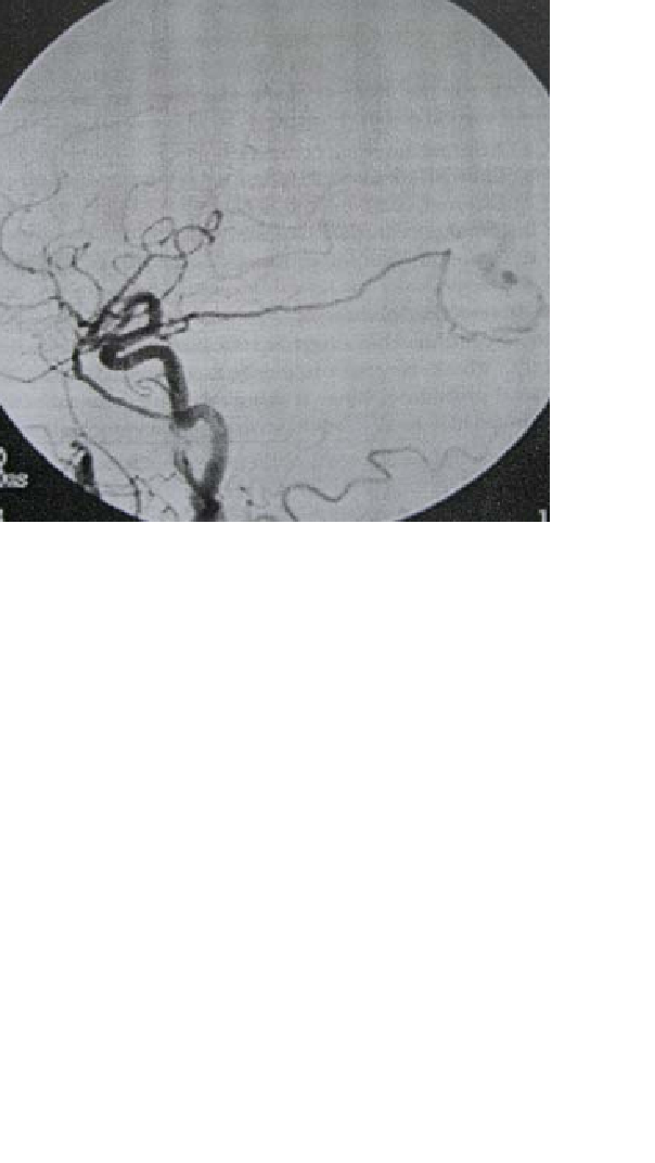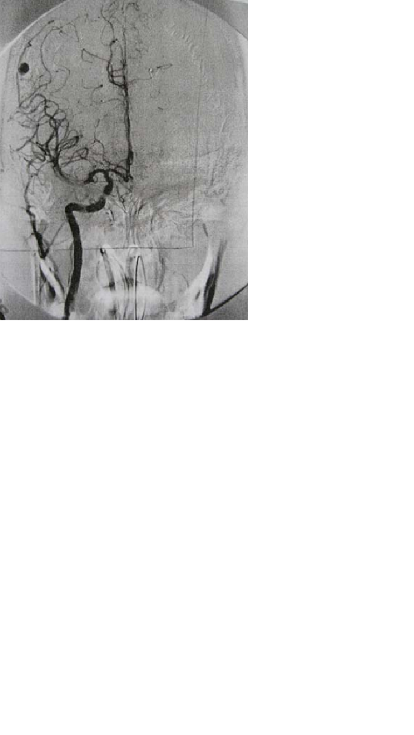 mengalami kenaikan, tapi jumlah protein, glukosa dan sel darah putih semuanya normal, termasuk tidak santokromia. Angiogram pasien tampak di bawah ini..