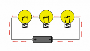 In der Serienschaltung (auch Reihenschaltung genannt) sind mehrere Lampen oder andere elektrische Verbraucher im Stromkreis hintereinander eingebaut. Der Strom fliesst vom Minuspol zum Pluspol durch alle Lampen. Sie haben also einen gemeinsamen Stromkreis.