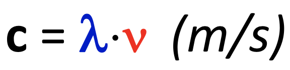 Where C equals the speed of light, give the formula to calculate C with wavelength and frequency.