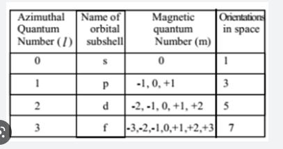 ml(Magnetic Quantum Number)- specifies the particular orbitals within a subshell where an electron is likely to be found at a given moment of time
