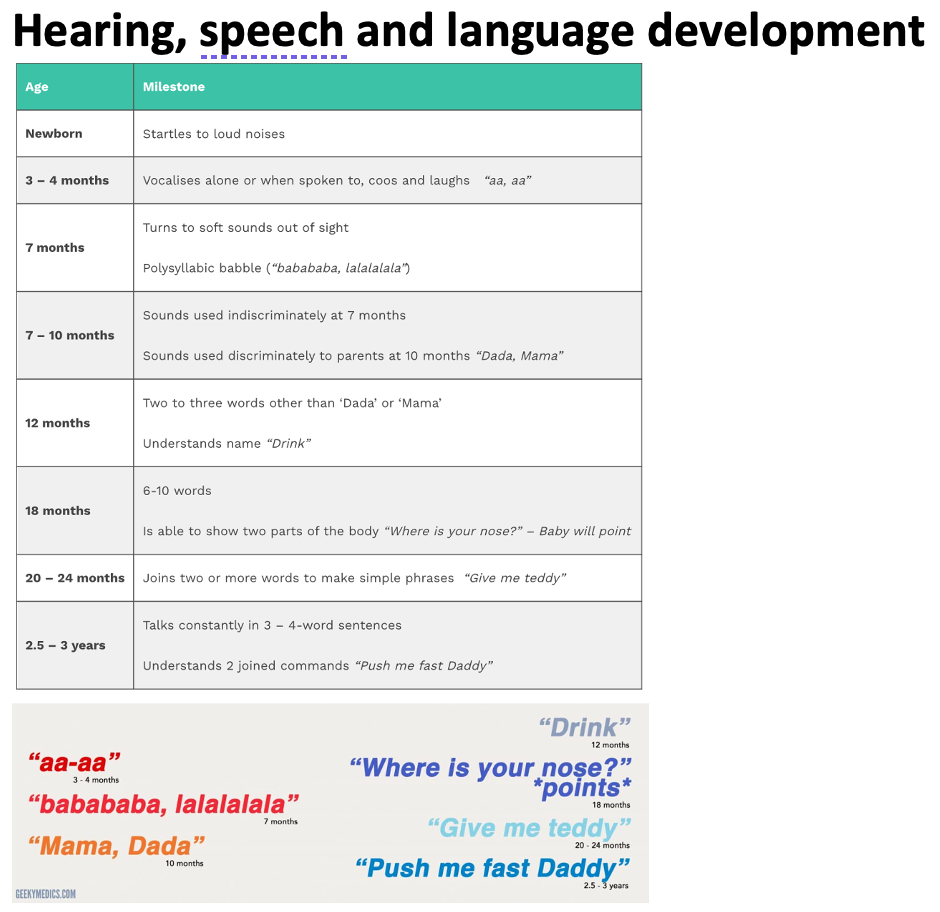 Hearing, speech and language development