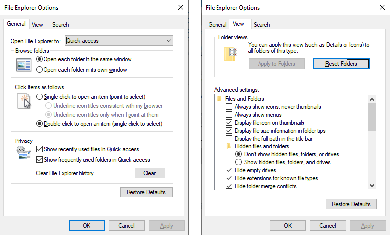 File Explorer Options is in the Control Panel