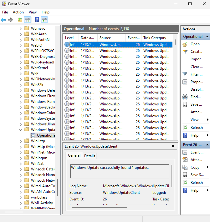 Event Viewer > Applications and Service Logs > Microsoft > Windows > WindowsUpdateClient > Operational